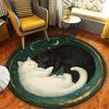 Yin Yang Cat Circular Carpet with Anti Slip Backing Flannel Carpet Machine Washable for Living Room Lightweight Home Decor