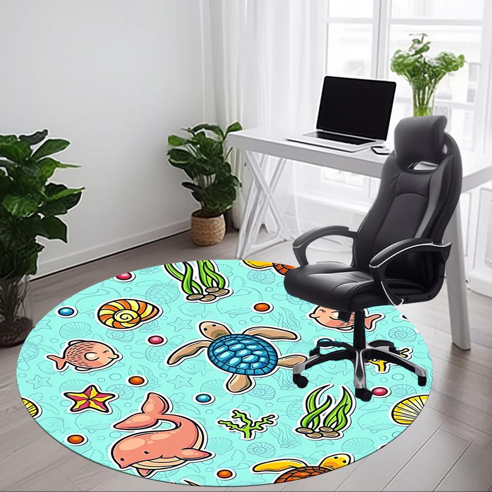 1 szt. Dywanik pod krzesło z motywem stworzeń morskich do biura, antypoślizgowy, miękki i trwały dywanik biurowy
