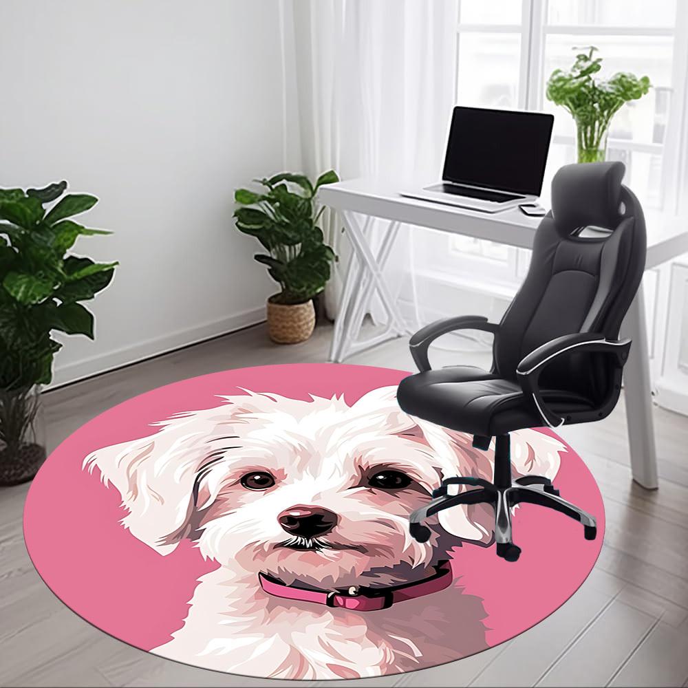 1pc Poodle Pink Office Round Rug, Carpet for Office, Gaming, Lightweight Round Floor Mat yy260205020