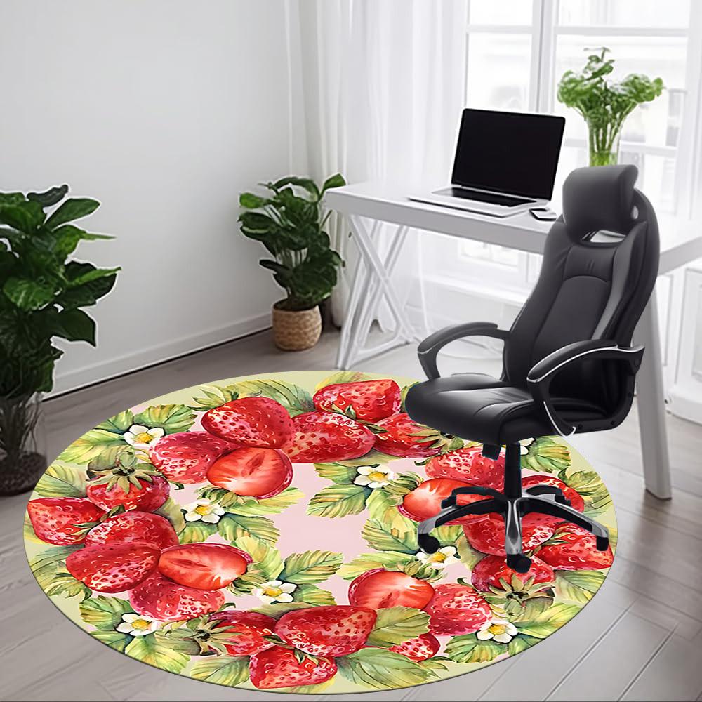 1pc Strawberry Wreath Office Round Rug, Carpet for Office, Gaming, Lightweight Round Floor Mat yy260208020