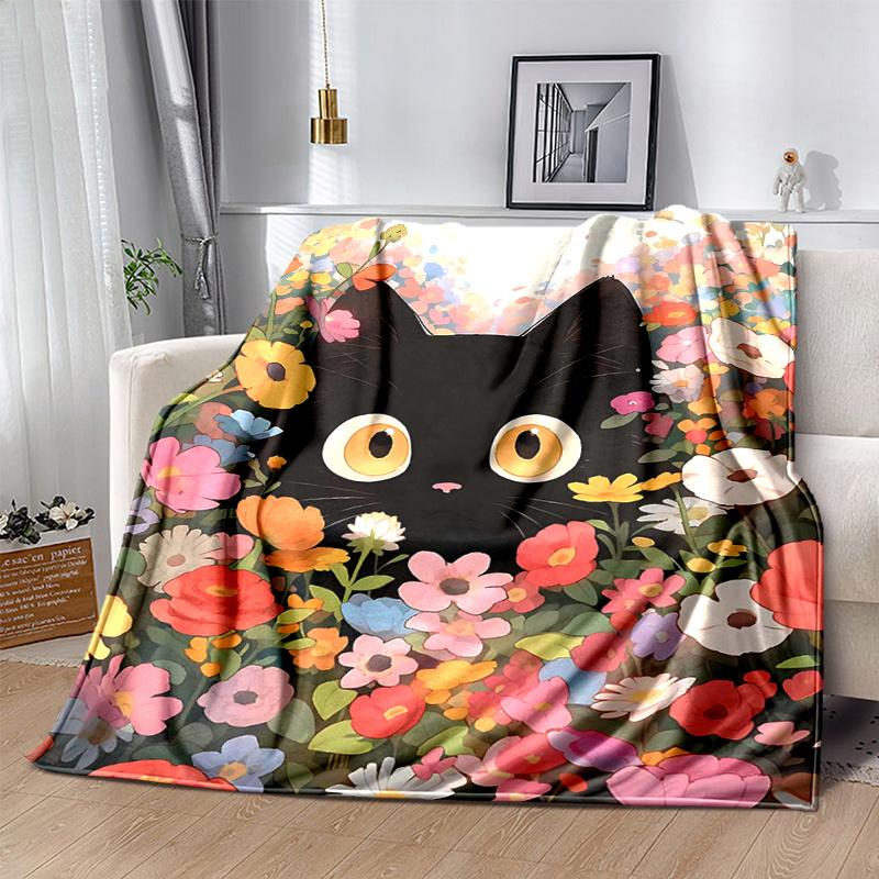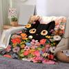 1pc Flowery Black Cat Themed Blanket Seasonal Home Decorative, Living Room, Travel, Camping, Car Blankets