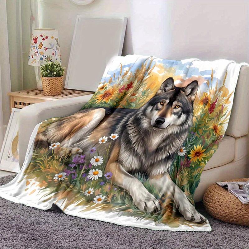1pc Wolf's Peaceful Rest amidst Nature's Bounty Blanket Soft Throw for Home Decor, Gift Idea, Living Room, Travel, Camping, Car Blankets