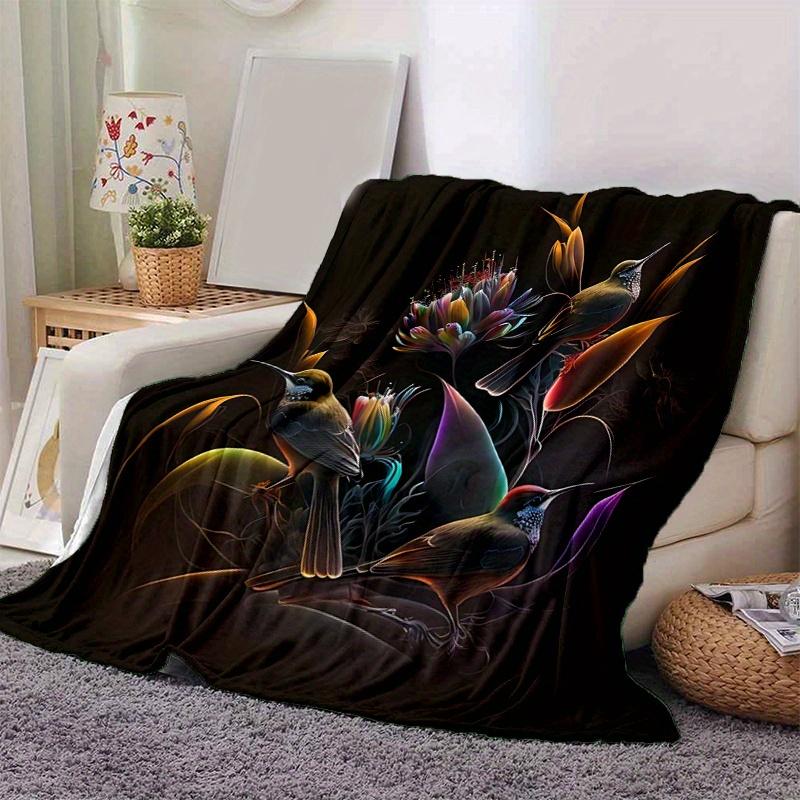 1pc Birds amidst Luminous Flowers Blanket Home Decor, Gift Idea, Suitable for All Seasons,Living Room, Travel, Camping, Car Blankets