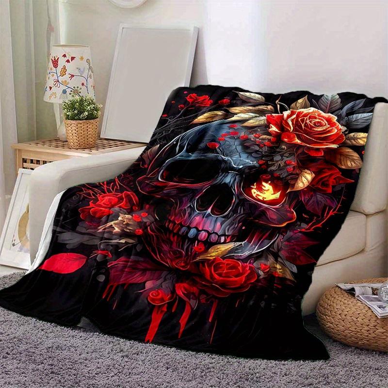 1 szt. Koc z Kwiatową Czaszką Miękki Ciepły do Wystroju Domu Prezent, Salon, Podróż, Kemping, Koc Samochodowy