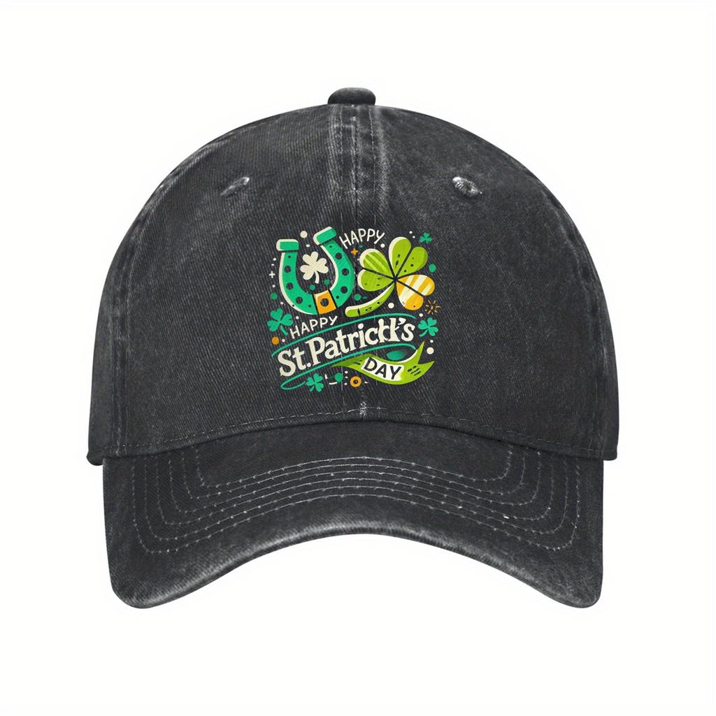 St Patricks Day Horseshoe Shamrock Baseball Cap Vintage Washed Adjustable Casual Hat for Adult Unisex