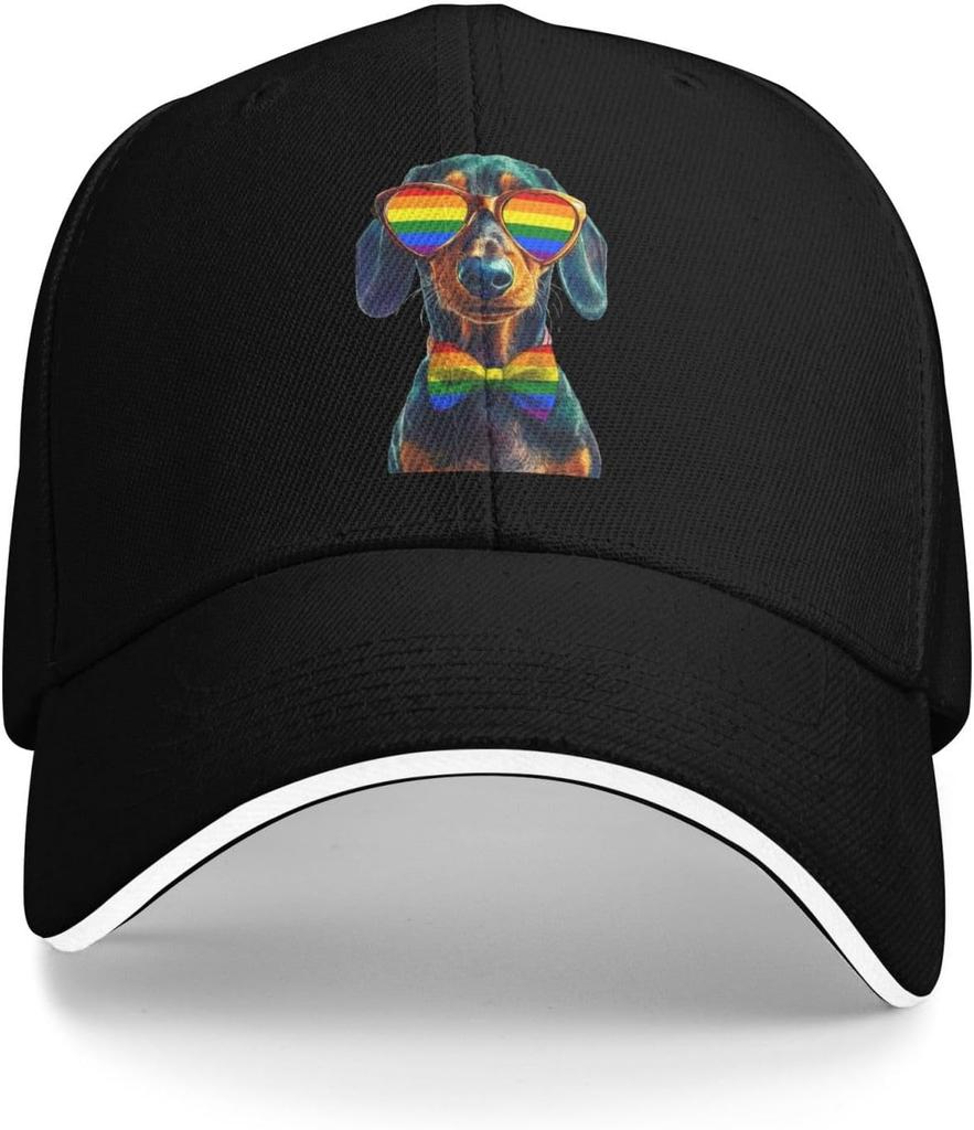 Dachshund Rainbow Pride Sunglasses Dog Baseball Cap Unisex Adjustable Polyester Casual Summer Sun Hat