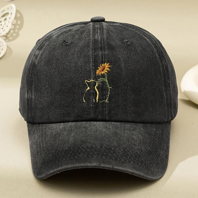 Vintage Kreskówkowy Kot Słoneczniki Nadruk Czapka Baseballowa Regulowana Lekka Czapka Taty dla Mężczyzn Kobiet Odpowiednia na Każdą Porę Roku