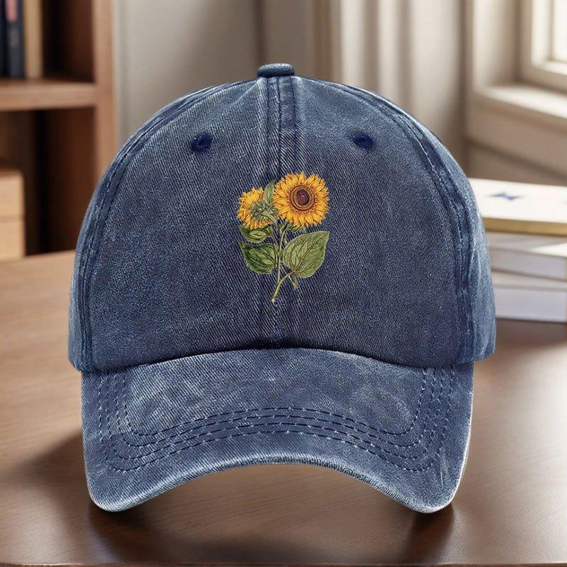Sunflower Baseball Cap Distressed Denim Sun Protection Casual Adjustable Adult Hat