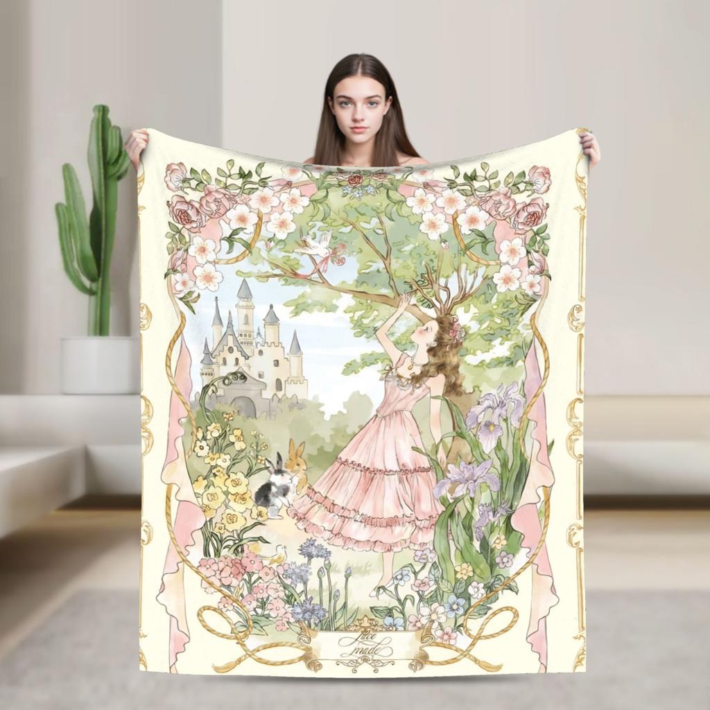 Border Painting Art Girl Blanket Super Soft Novelty Plush Bedding Throws For Girls Boys Outdoor Flannel Bedspread Bed Cover