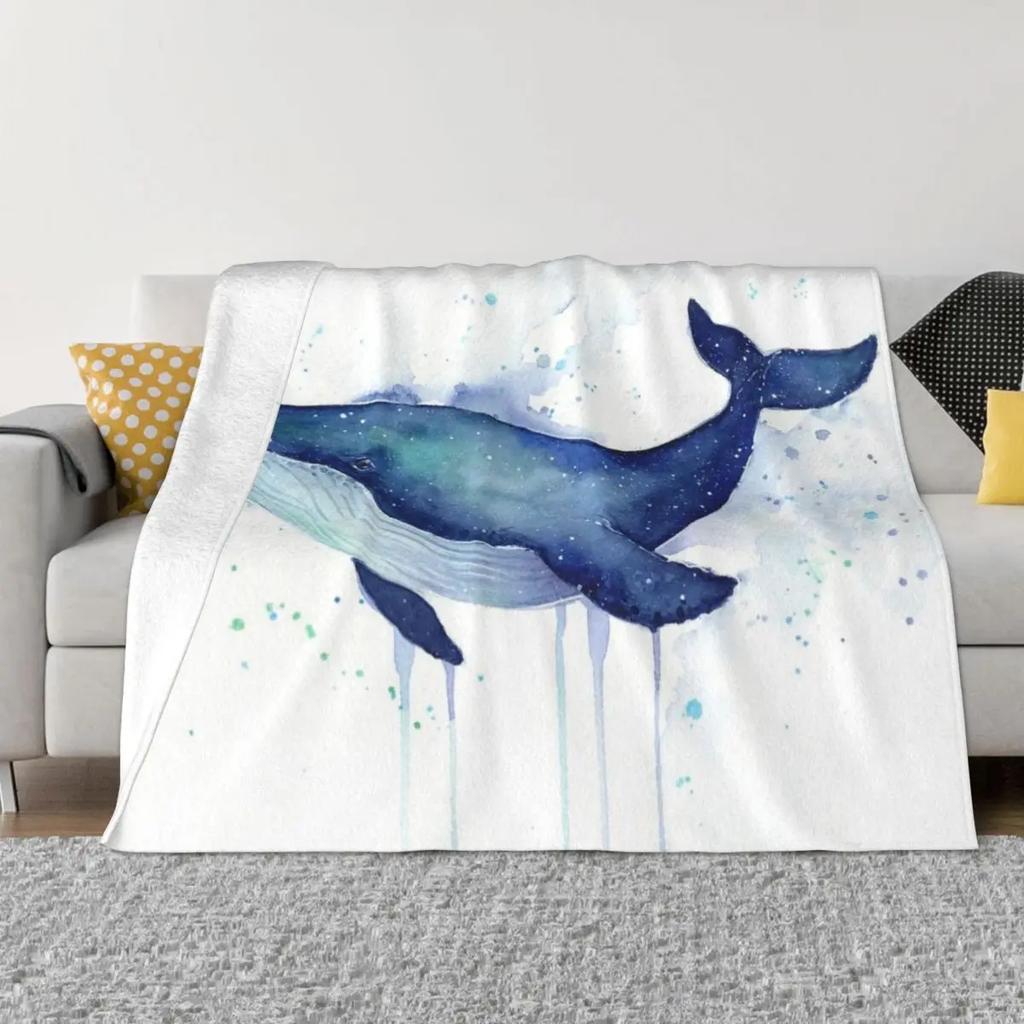 Whale Watercolor Galaxy Throw Blanket For Sofa Thin Fluffy Softs Softest Warm Blankets