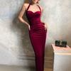 Czyste Pragnienie Bordowa Sukienka Letnia Moda Styl Damski Obcisła Długa Spódnica