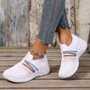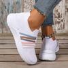 The Lady Wears Slip-On Casual Sports Shoes, Featuring a Breathable Mesh Design with Pastel Stripes, Suitable for Tennis And Comfortable