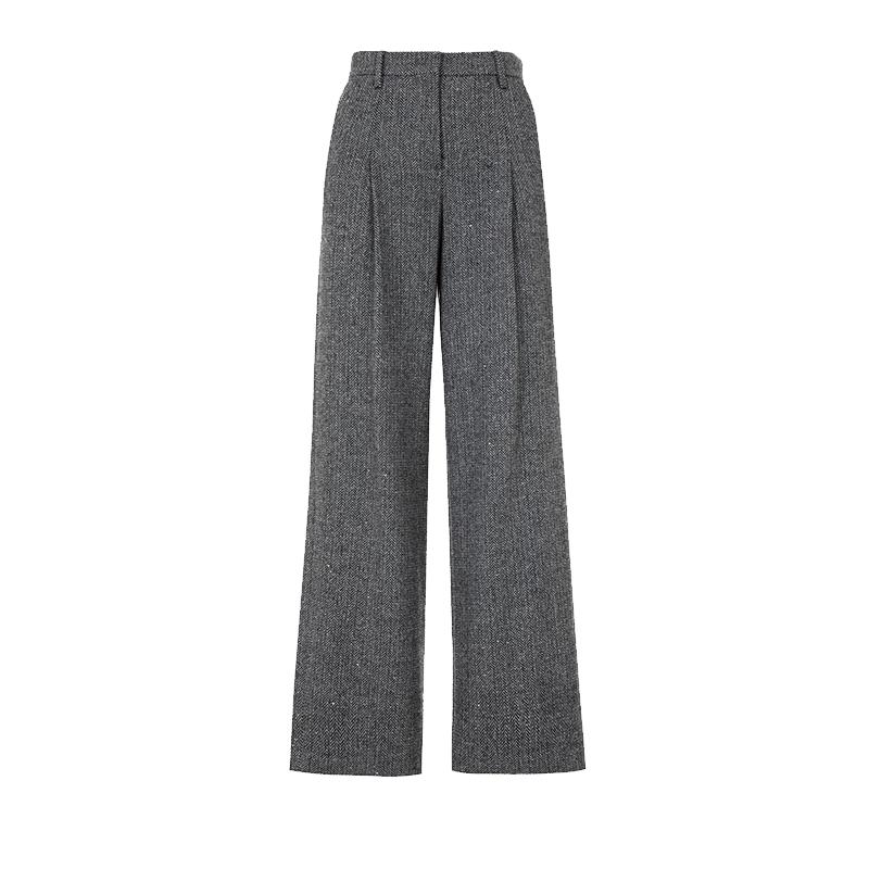 Langzi Retro Herringbone Wool Blend Wide-Leg Suit Pants