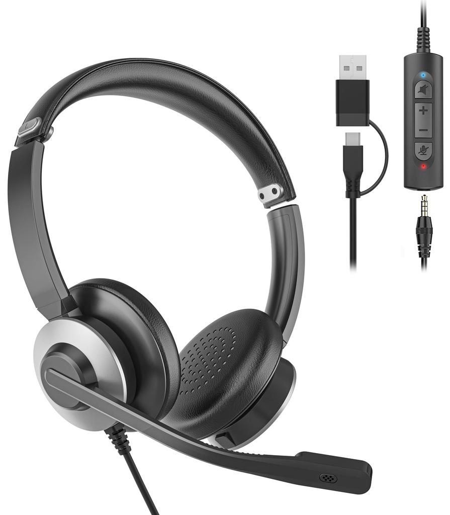 [All-day comfort & flexible adjustment] The three-dimensional mesh cushion of the headphones with microphone prevents stuffiness even when worn for long periods of time. The 360-degree rotating microphone and sliding headband make them suitable for any situation, from online classes to call center work.
