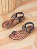 Poczuj idealne połączenie stylu i komfortu dzięki tym bohemicznym sandałom etnicznym, zaprojektowanym specjalnie dla kobiet, które kochają letnią modę.. Obuwie ma żywy, ozdobiony koralikami design, który dodaje odrobiny stylu każdej stylizacji.. Cholewka wykonana jest z wytrzymałego poliuretanu, zapewniając trwały i szykowny wygląd.. Dla dodatkowego komfortu, wyściółka jest również wykonana z miękkiego poliuretanu, zapewniając gładkie uczucie na skórze.. Podeszwa z TPR oferuje doskonałą elastyczność i przyczepność, dzięki czemu te płaskie klapki są idealne do różnych letnich aktywności.. Podnieś poziom swojej sezonowej garderoby dzięki tym przyciągającym wzrok i wszechstronnym sandałom.