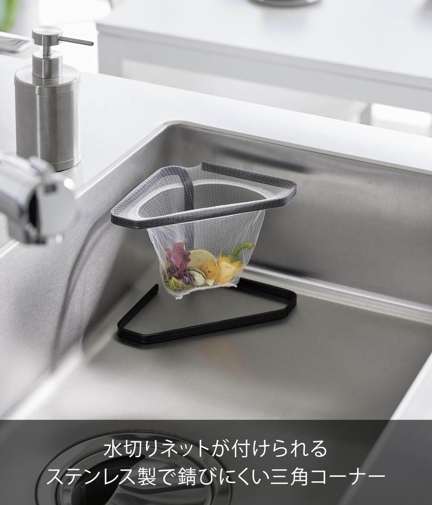 Yamazaki Tower Stainless Steel Triangular Drainer with Draining x x H15cm Not 1556 Net, Black, W20.6 D10.8 (Cushion Included),