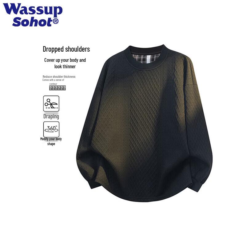 Wassup Sohot Men's Quilted Crewneck Pullover Sweatshirt
