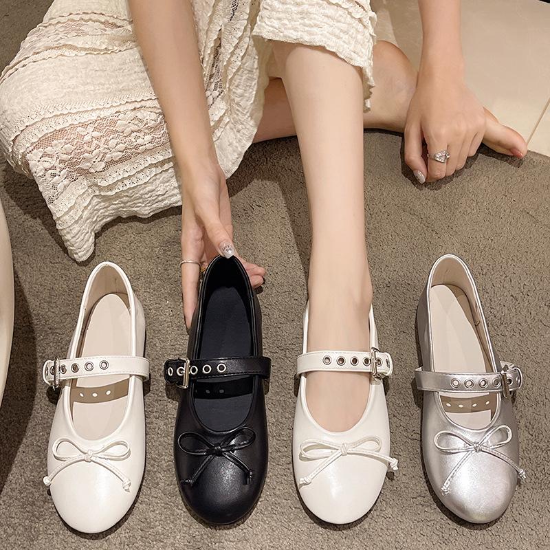 Single Shoes Spring Casual One-word Buckle Ballet Flats Bow Mary Jane Single Shoes Tide