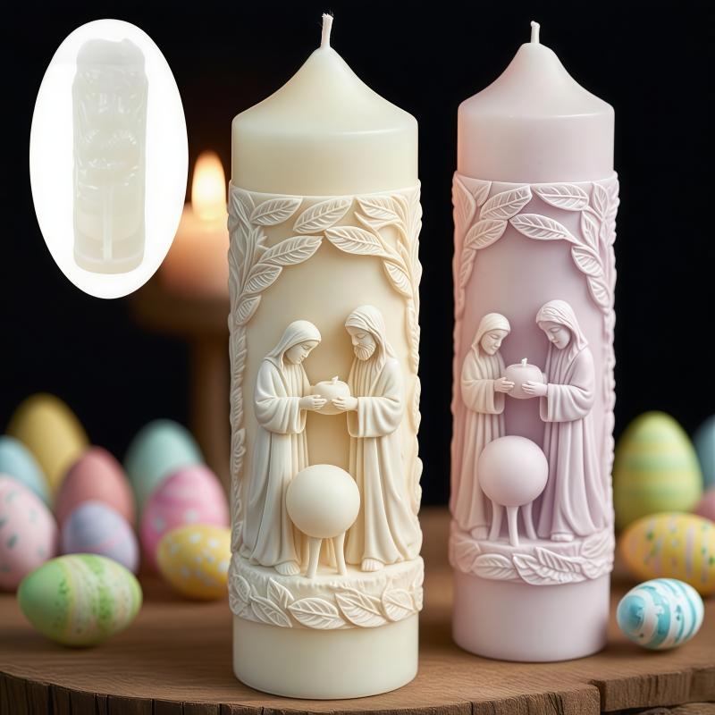 Jesus Mary relief pointed cylindrical candle silicone mold resin mold Jesus Mary goddess holding pomegranate relief gypsum molds