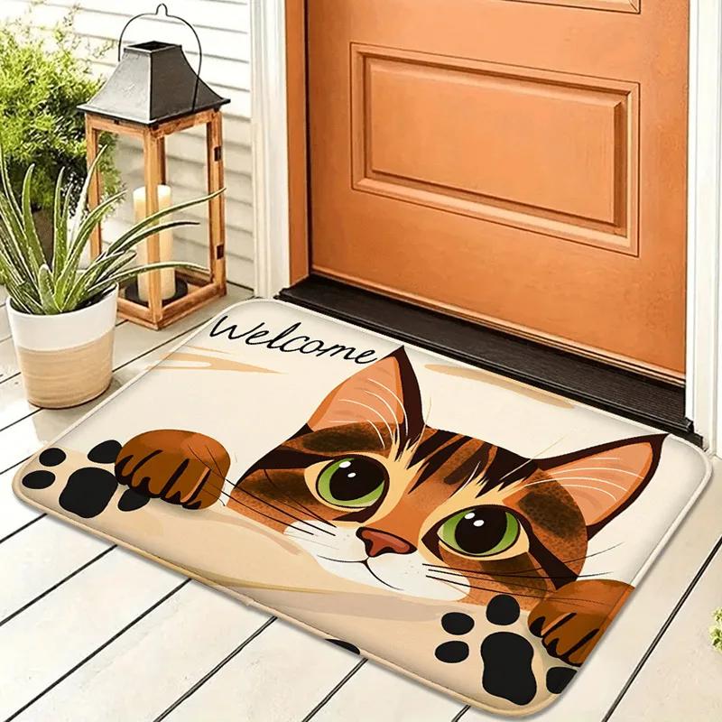 Cute Cat Flannel Kitchen Floor Mat Absorbent Door Mat for Bedroom Living Room Hand Washable