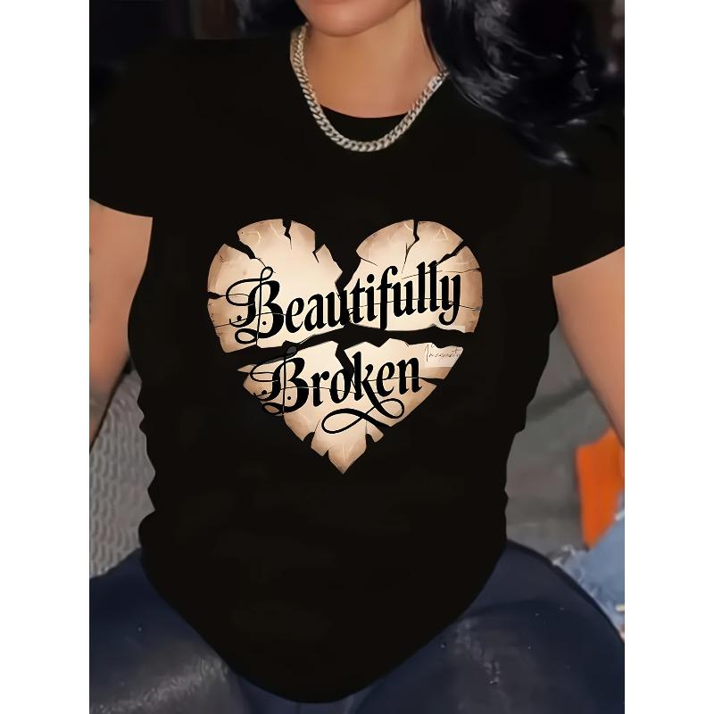 European Size Plus Size, Exquisite Broken Heart Pattern Top, Comfortable Round Neck, Machine Washable, All-Season Wear