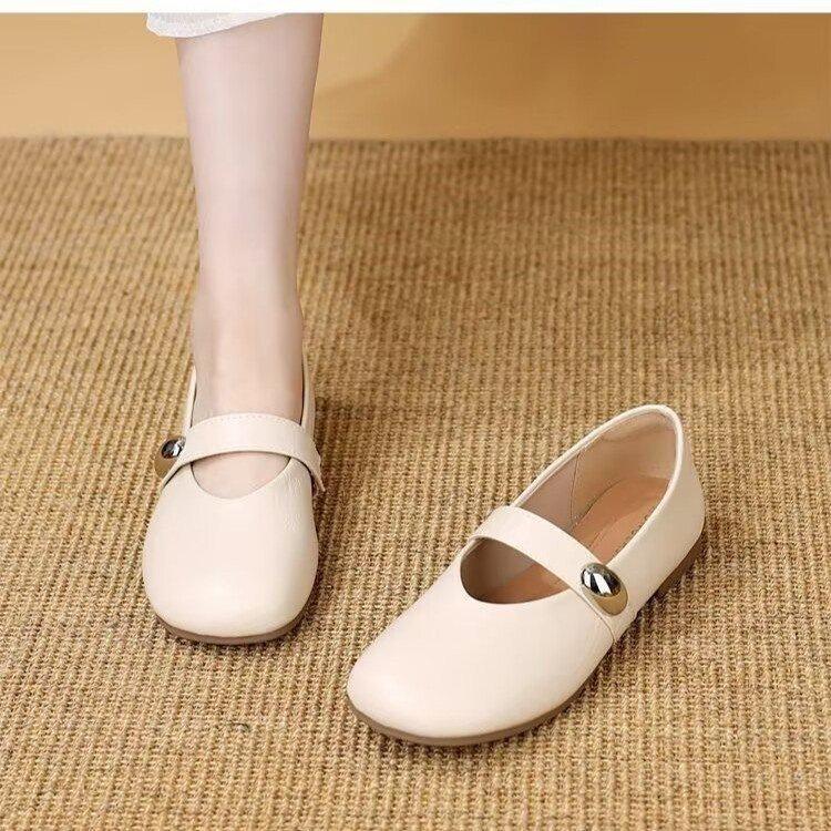 Autumn soft-soled Mary Jane small leather shoes new retro single shoes flat-soled shallow-mouth beanie shoes