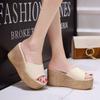 Slippers are worn outside, summer one-word flip flops, muffin bottom, non-slip slope and tide thick bottom sandals.