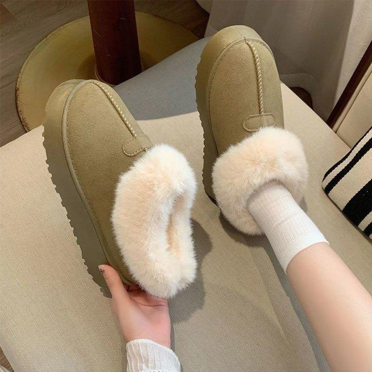 Winter low-top fluffy snow boots, piled and thickened warm cotton shoes, new thick-soled non-slip bread shoes