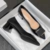 Soft leather high-heeled single shoes, new autumn medium heel, pointed head, light mouth shoes, French temperament thick heel