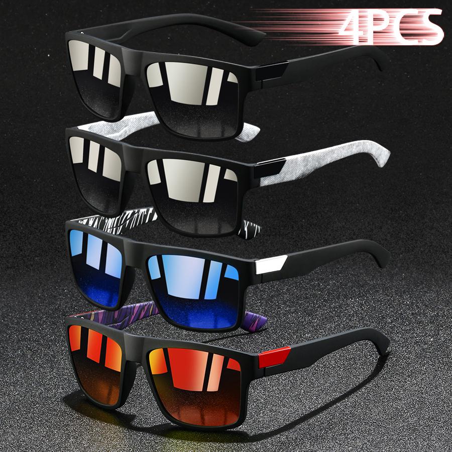 4 SZT. Kwadratowe Okulary Przeciwsłoneczne Vintage Męskie Luksusowe Designerskie Okulary Przeciwsłoneczne Przeciwodblaskowe Retro UV400 Okulary do Wędkarstwa Jazdy