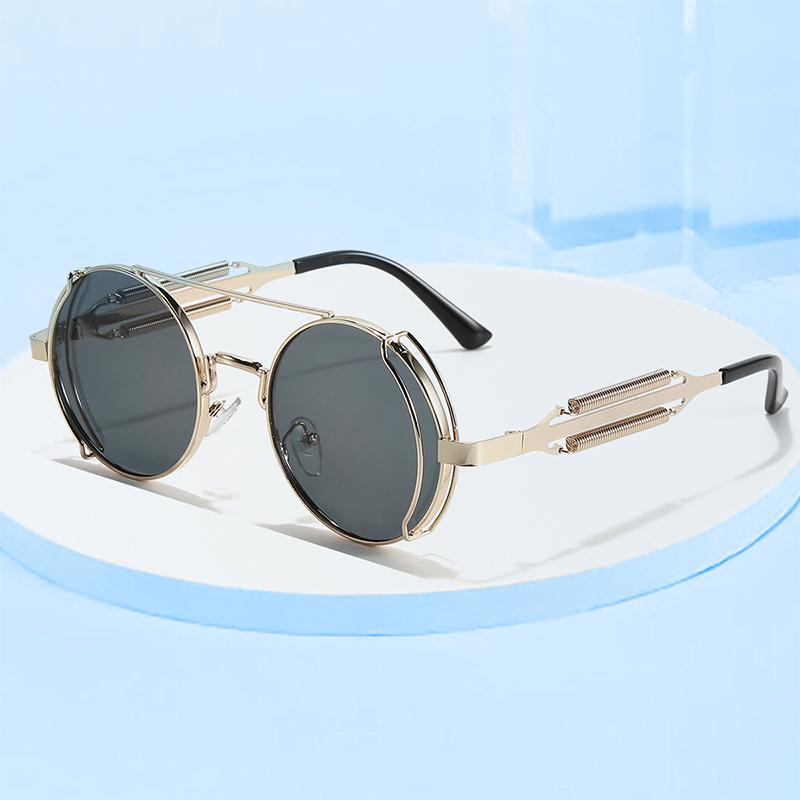 Cyberpunk Round Frame Sunglasses for Men Stainless Steel Hollowed Out Mirror Legs Avant Garde Fashion