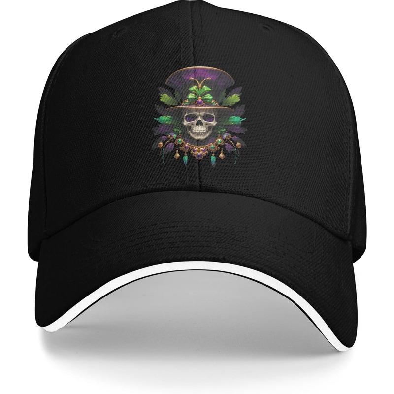 Mardi Gras Skull Hat Baseball Cap Polyester Adjustable Casual Cap for Adults Unisex
