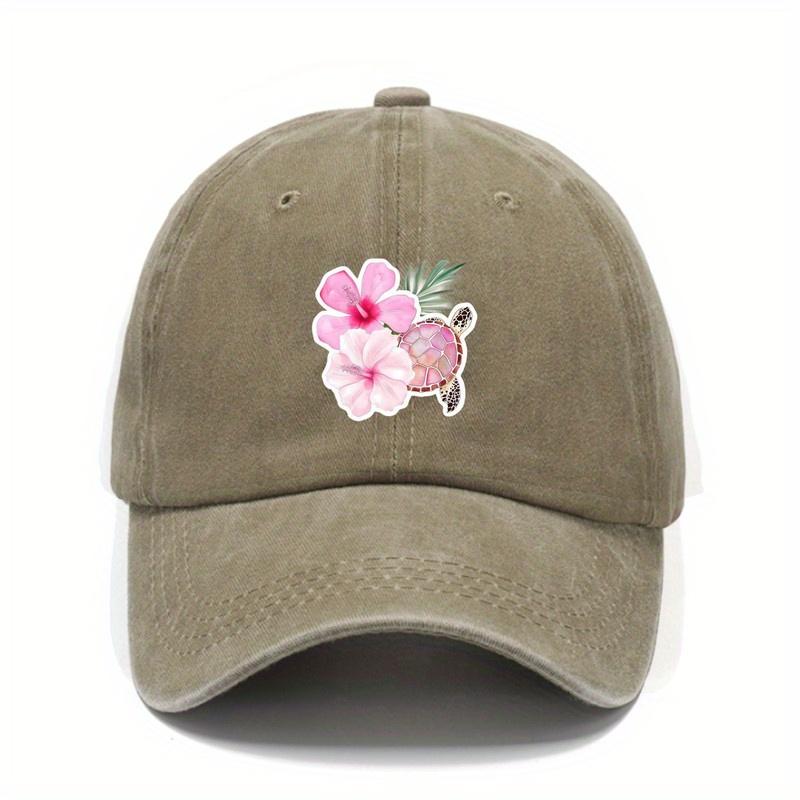 Hawaiian Turtle Floral Print Baseball Cap Unisex Washed Cotton Casual Outdoor Sun Protection Hat
