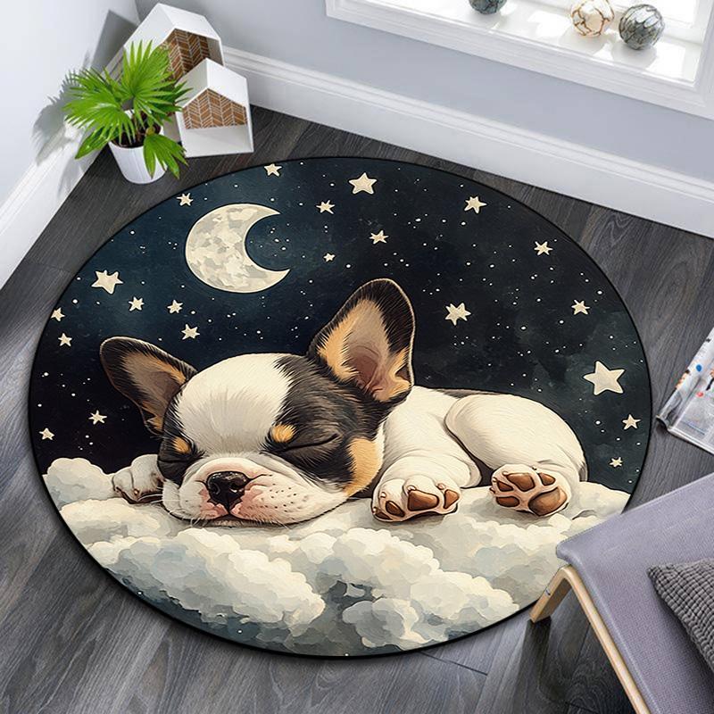 Sleeping French Bulldog Round Area Rug,Carpet Rug for Living Room Bedroom Sofa Playroom Decor,Non-slip Floor Mat