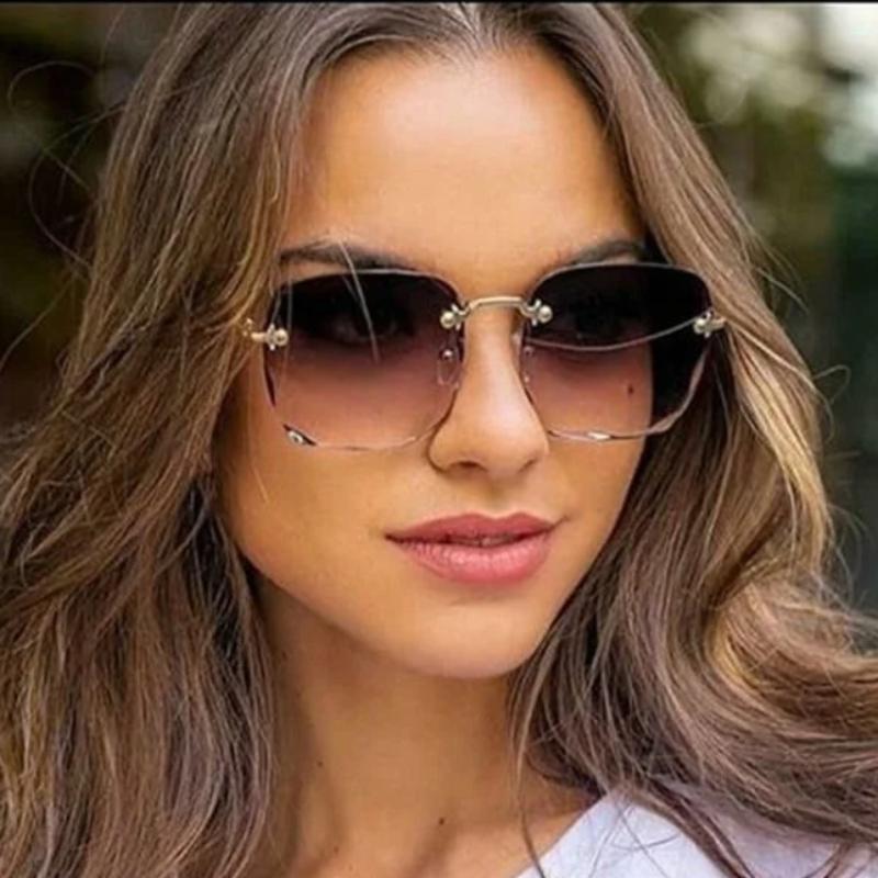 Large Frame Square Sunglasses Rimless UV Protection Fashion Gradient Two-color Eyewear Women Sunglasses