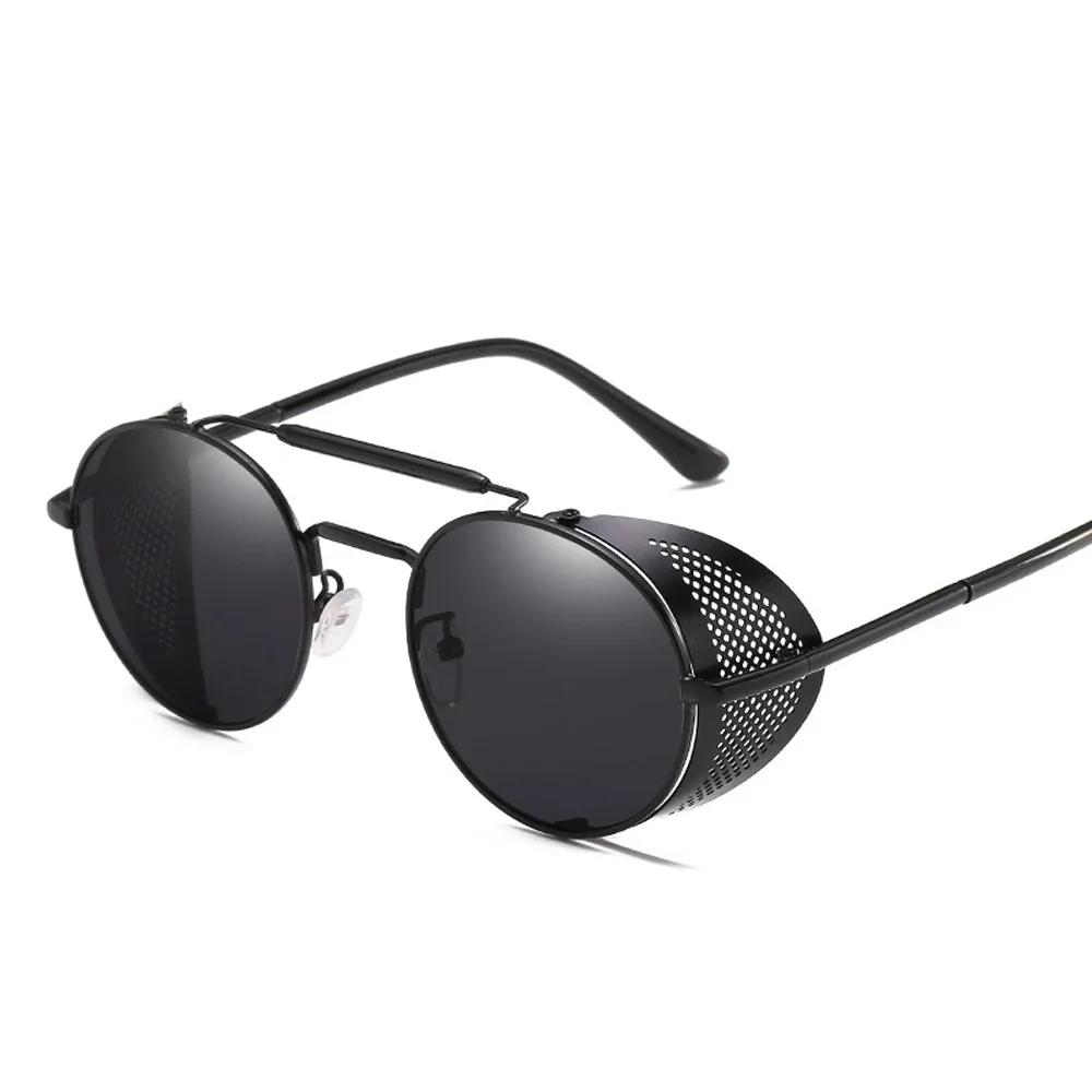 Retro Gothic Steampunk Round Metal Frame Sunglasses Luxury Designer Shields Lens for Men Women Sun Glasses Gafas de Sol