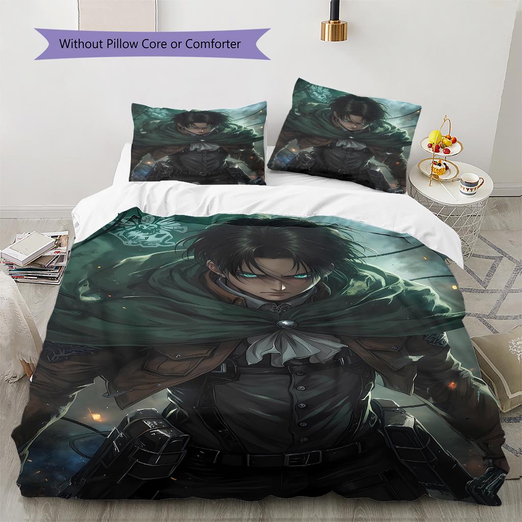 Pościel z motywem Attack on Titan, Zestaw kołdry Poszewka na kołdrę Poszewka na poduszkę Domowy prezent urodzinowy (1 * poszwa na kołdrę + 2 * poszewki na poduszki, bez rdzenia)