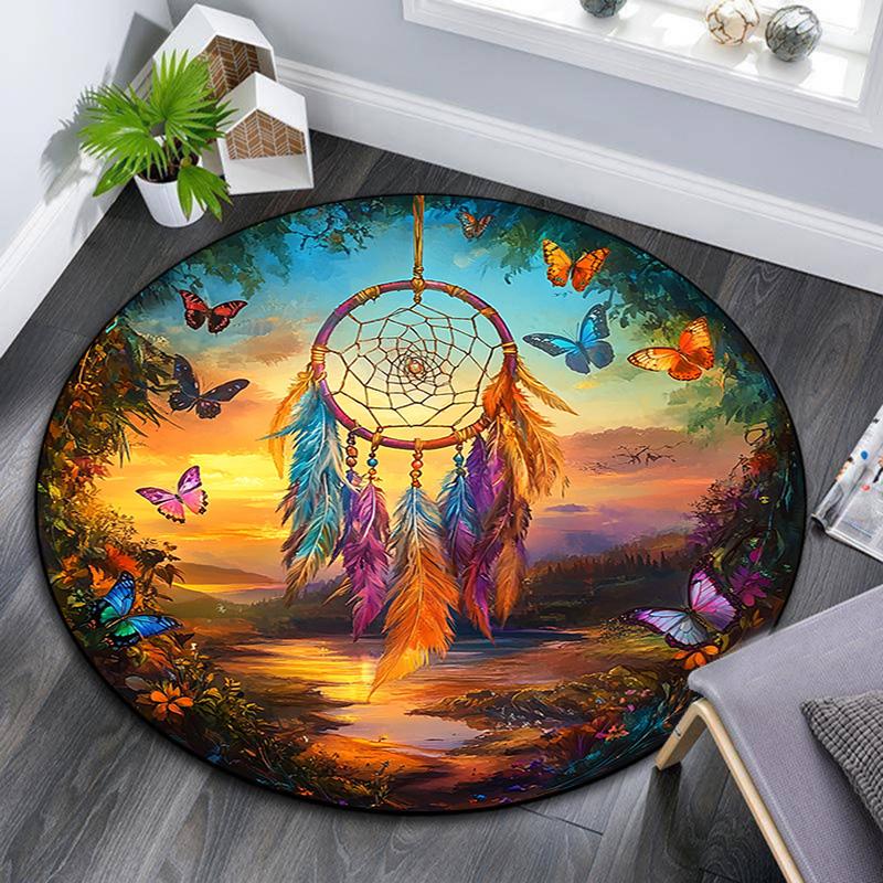 Okrągły dywanik Dreamcatcher, dywanik do salonu, sypialni, sofy, pokoju zabaw, dekoracja, antypoślizgowa mata podłogowa