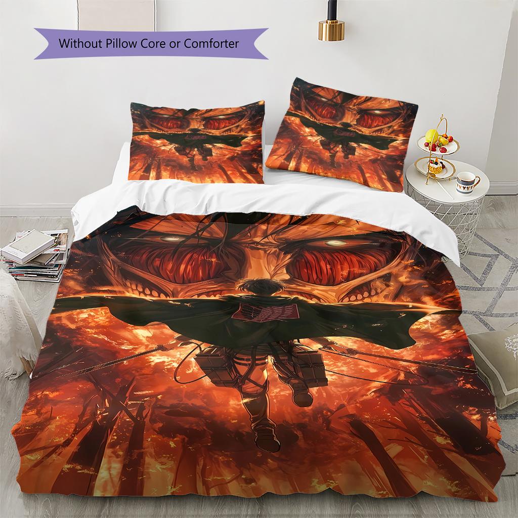 Pościel z motywem Attack on Titan, Zestaw kołdry Poszewka na kołdrę Poszewka na poduszkę Domowy prezent urodzinowy (1 * poszwa na kołdrę + 2 * poszewki na poduszki, bez rdzenia)