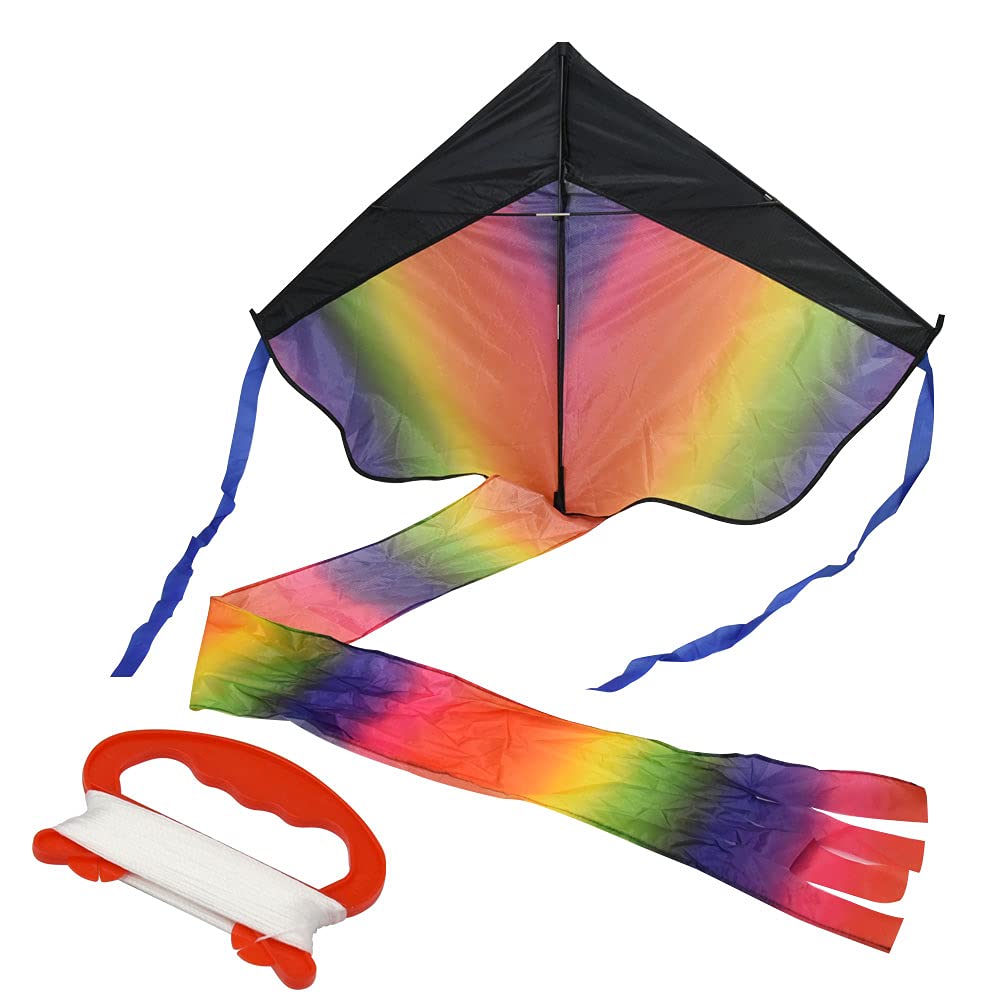 Rainbow Kite Delta Kite Kite Flying Toy, Assembled, 80m Kite Line, Stable Spool, for Kids and Adults