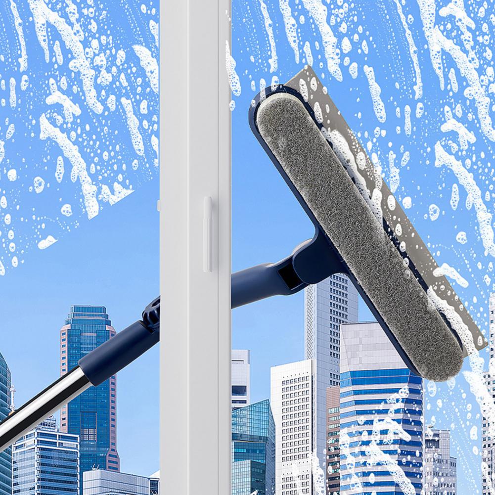 Window Brush Glass Wiper with Flexible Corner Head 180-degree Rotating Panel Double-sided Scraper with Built-in for Outdoor