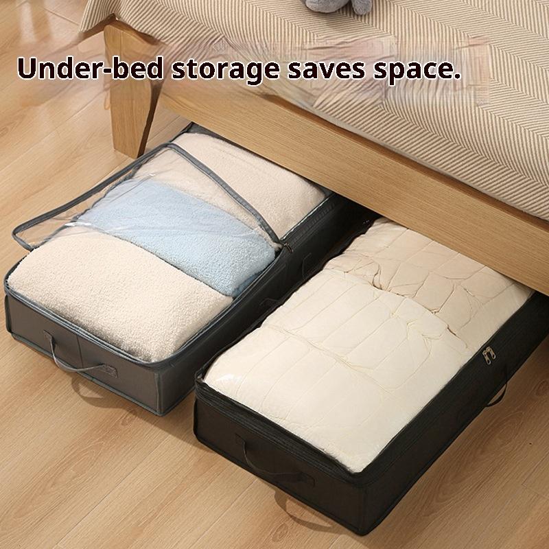 Under Bed Storage Box, Foldable Organizer with Clear PVC Window, Underbed Clothes/Shoes/Blanket Storage Container for Closet
