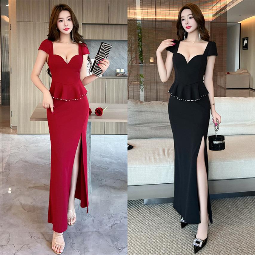 Sexy dress fake two-piece evening dress premium soft foot bath overalls