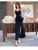 Pure desire sexy v-neck suspender dress women's summer black slim fit slim hip wrap nightclub dress long skirt