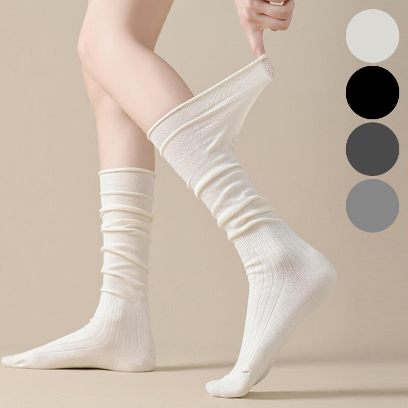 Lucien pleated plain overknee socks