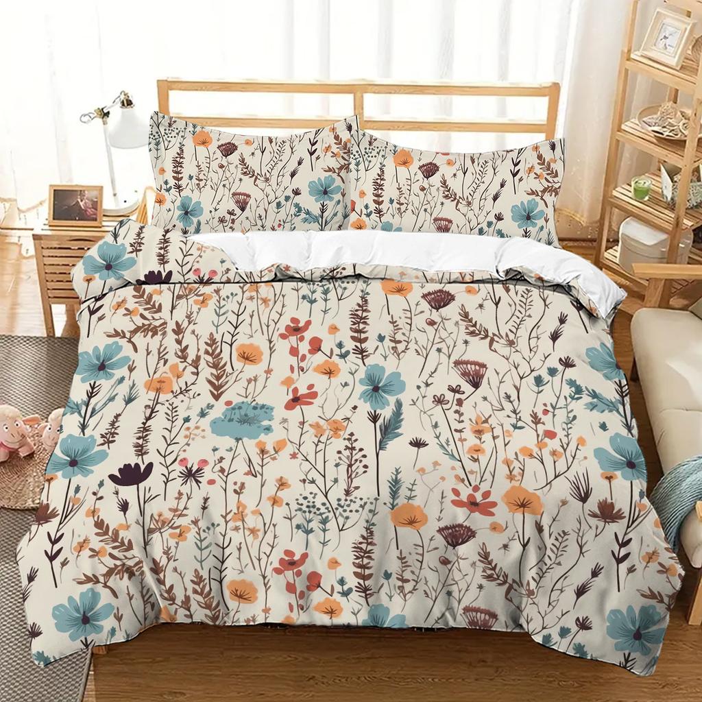 Flower and flower pattern 3D printed bedding set, colorful style down duvet cover set, soft and comfortable home luxury duvet co
