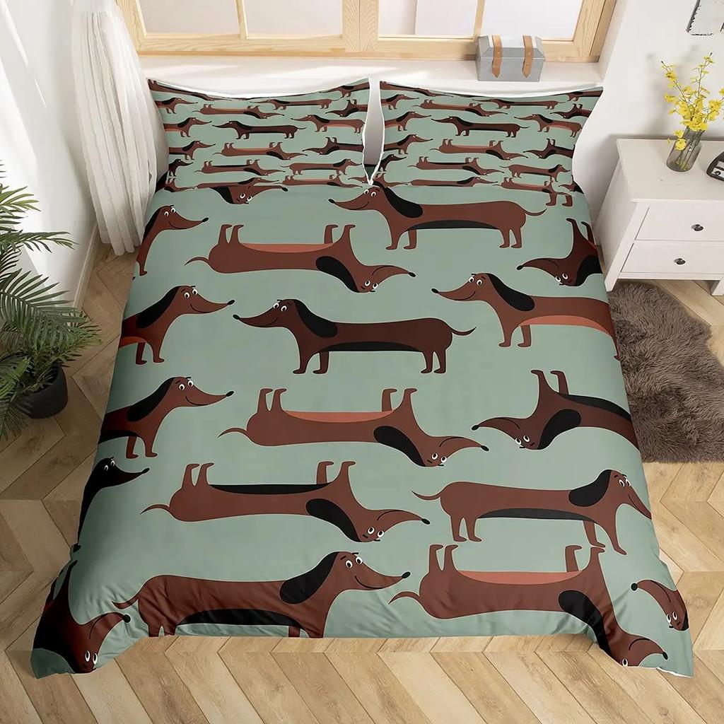 Zestaw Poszwy na Kołdrę Jamnik Kreskówkowy Szczeniak Pies Zestaw Pościeli Maluch Pies Jamnik Pokrowiec na Kołdrę Narzuta na Łóżko Jamnik
