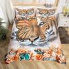 White Tiger Red Rose King Queen Duvet Cover Africa Big Cat Flower Bedding Set For Teen Adult Animal 2/3pcs Quilt Cover
