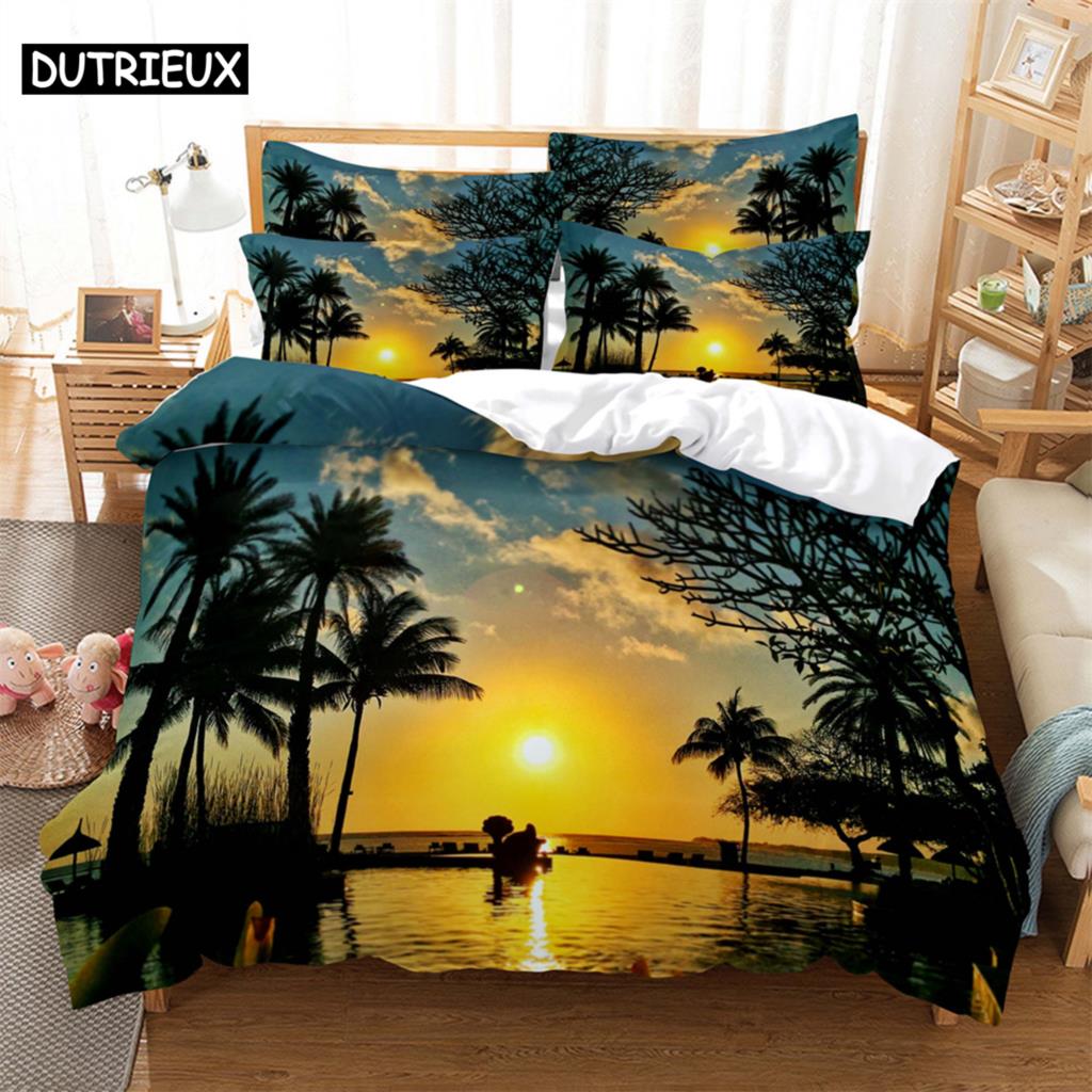 Sunset rafting Bedding 3-piece Digital Printing Cartoon Plain Weave Craft For North America And Europe Bedding Set Queen