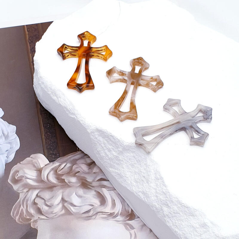 Acrylic marble pattern cross pendant accessory